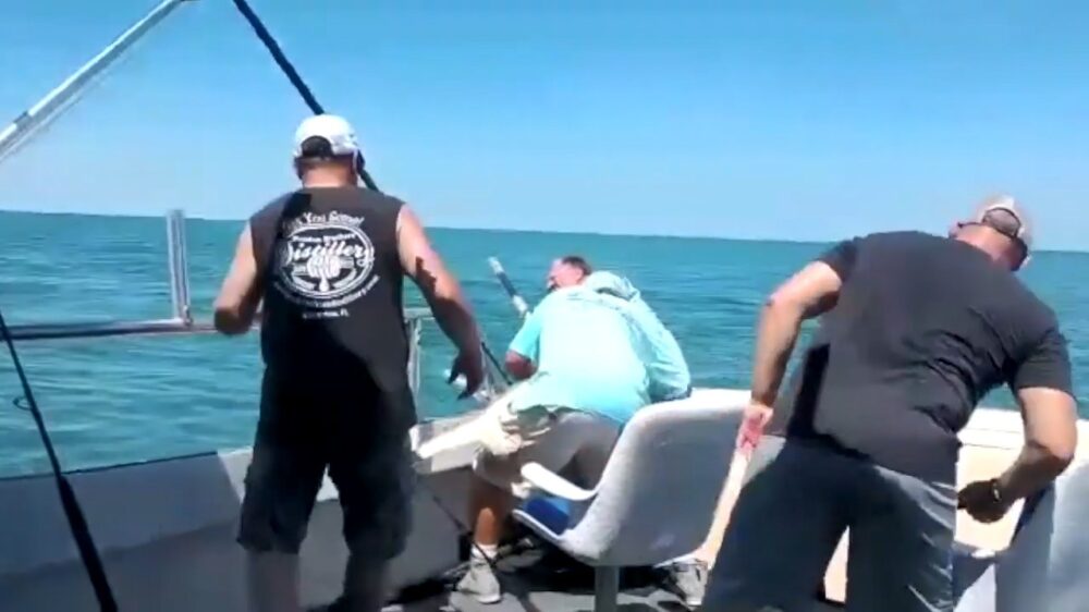 Visser geniet maar kort van zijn vangst als hij op een pijnlijke plek wordt gebeten