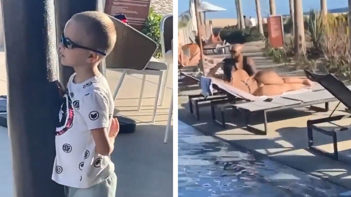 Kleine jongens worden groot: Timmy ziet iets interessants bij het zwembad