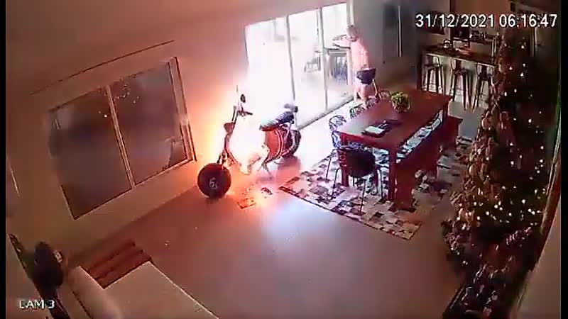 Dit is de reden dat je een elektrische step nooit tijdens het opladen onbeheerd achterlaat. Gelukkig verloopt het blussen wel vlekkeloos...