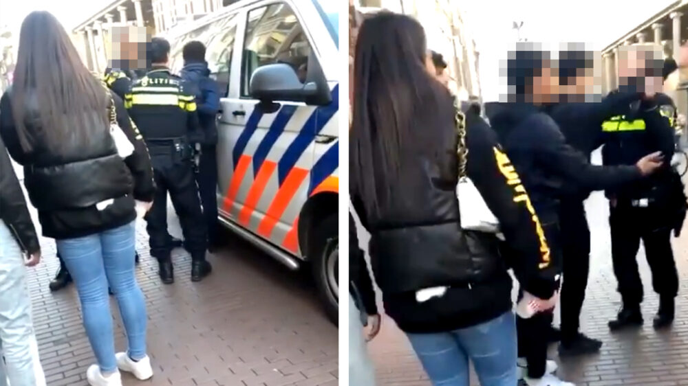 Vanaf dat moment begint deze video waarin te zien is hoe de agent een (corrigerende) tik uitdeelt omdat er met ziektes gescholden zou worden. Oordeel vooral zelf.