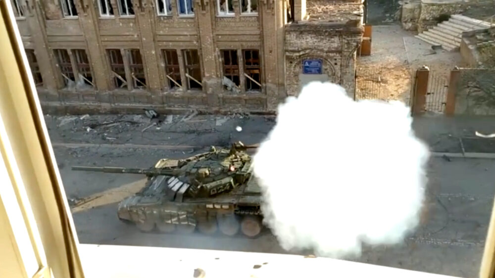 Wij zijn natuurlijk geen experts, maar volgens de bron werd hier een te licht anti-tankwapen gebruikt en heeft deze slechts een minimaal effect omdat het op een te korte afstand werd gebruikt. Eén ding is zeker: deze Russische soldaten komen in ieder geval met de schrik vrij.