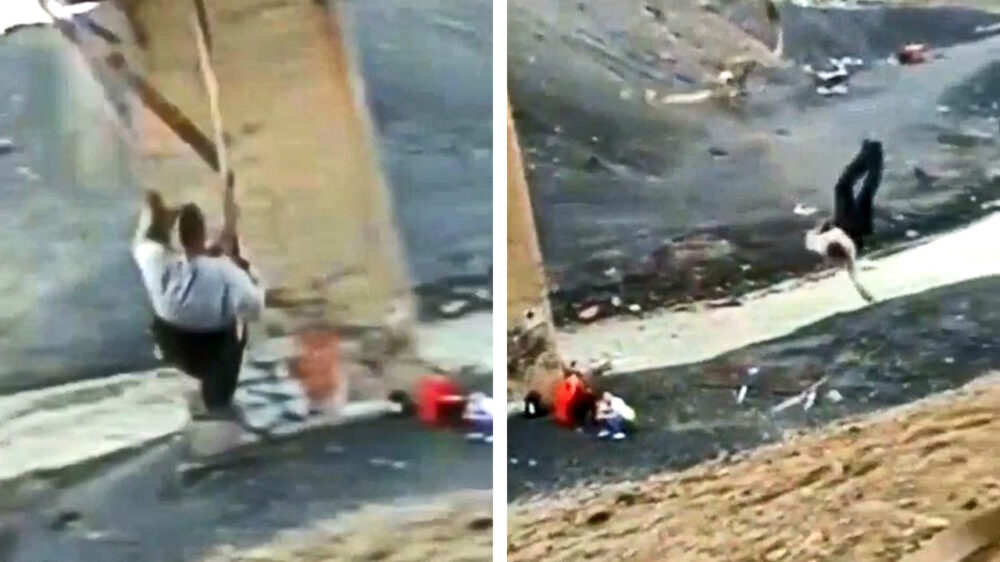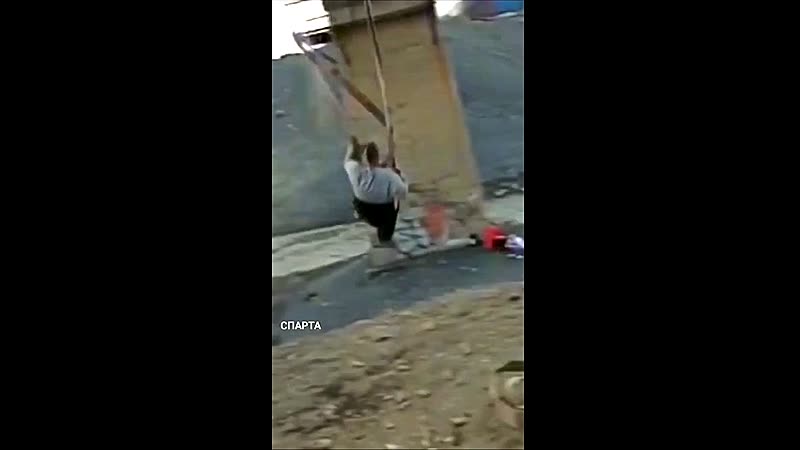 Nadat zijn zelfgemaakte schommel breekt vliegt hij enkele meters door de lucht voordat hij acrobatisch tegen de grond klettert. Woeeiii!