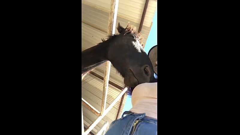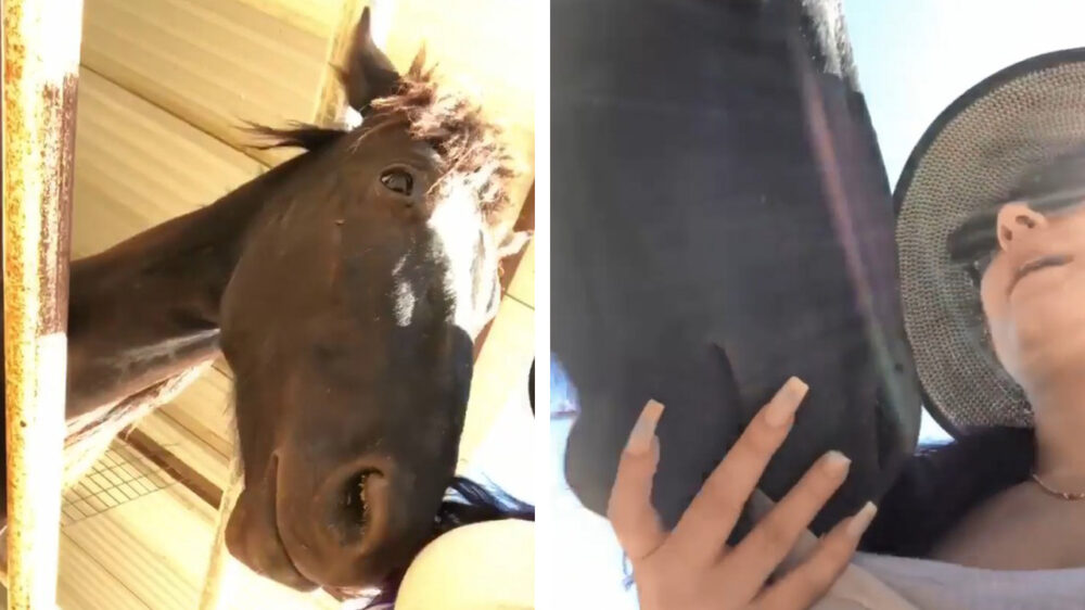 Paardenmeisje wordt enigszins apart gegroet door nieuwsgierige knol