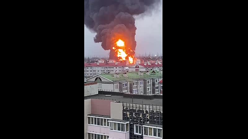 Beelden van brandend oliedepot in Rusland dat door twee (Oekraïense) helikopters aangevallen zou zijn