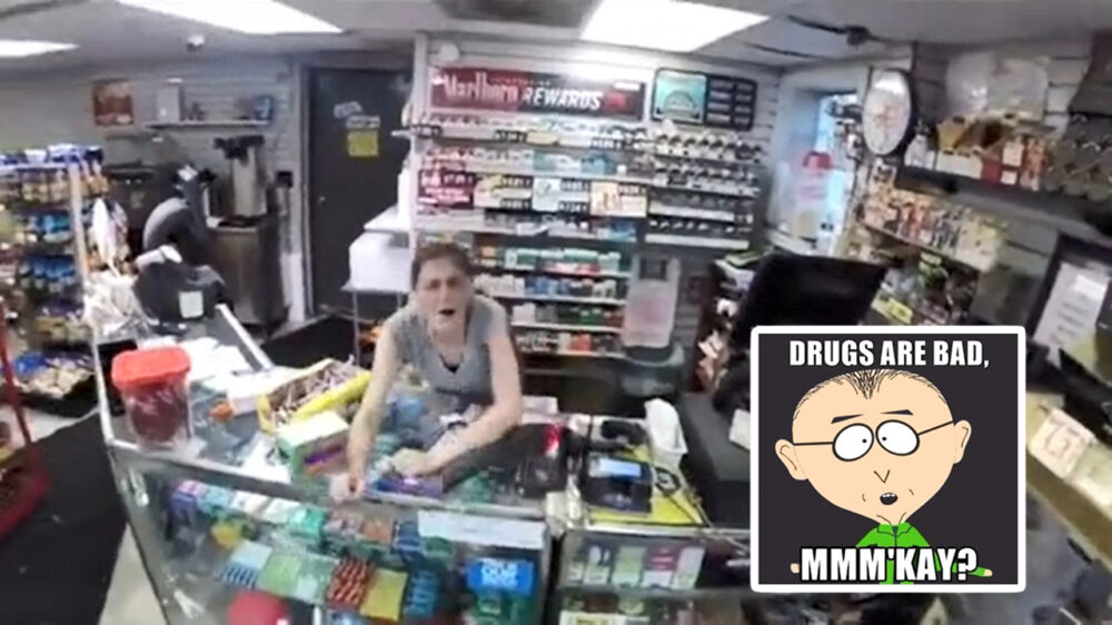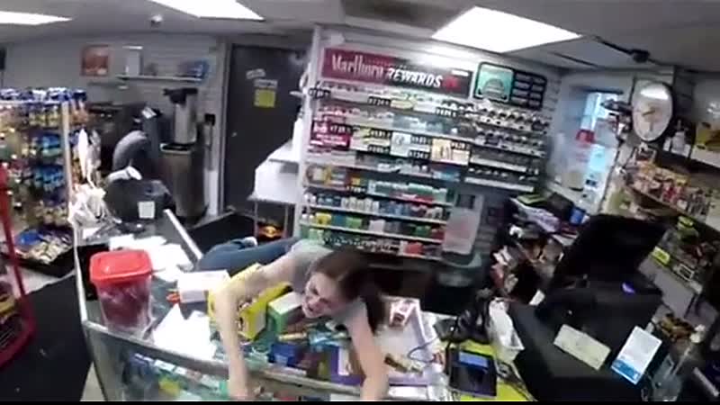 Trippende medewerkster van een Amerikaans tankstation gaat niet echt lekker