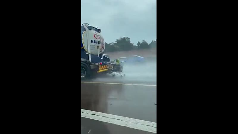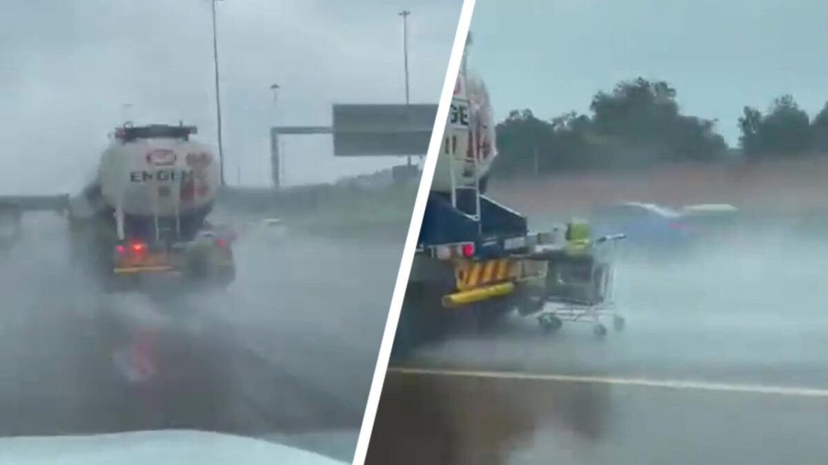 Achter een vrachtwagen hangen met een winkelwagen, voor als je echt levensmoe bent