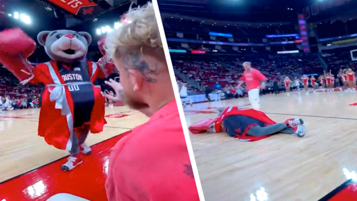 Professioneel bokser internetter heeft zichzelf weer eens in de picture weten te zetten door bij een NBA-wedstrijd de mascotte van de Houston Rockets tegen de vlakte te meppen. Toevalligerwijs waren er 380 camera's om alles vast te leggen, dus je zou kunnen stellen dat dit met een aan zekerheid grenzende waarschijnlijkheid gewoon een vooropgezet plan is.