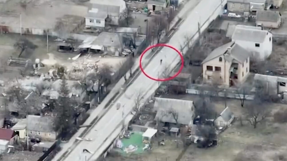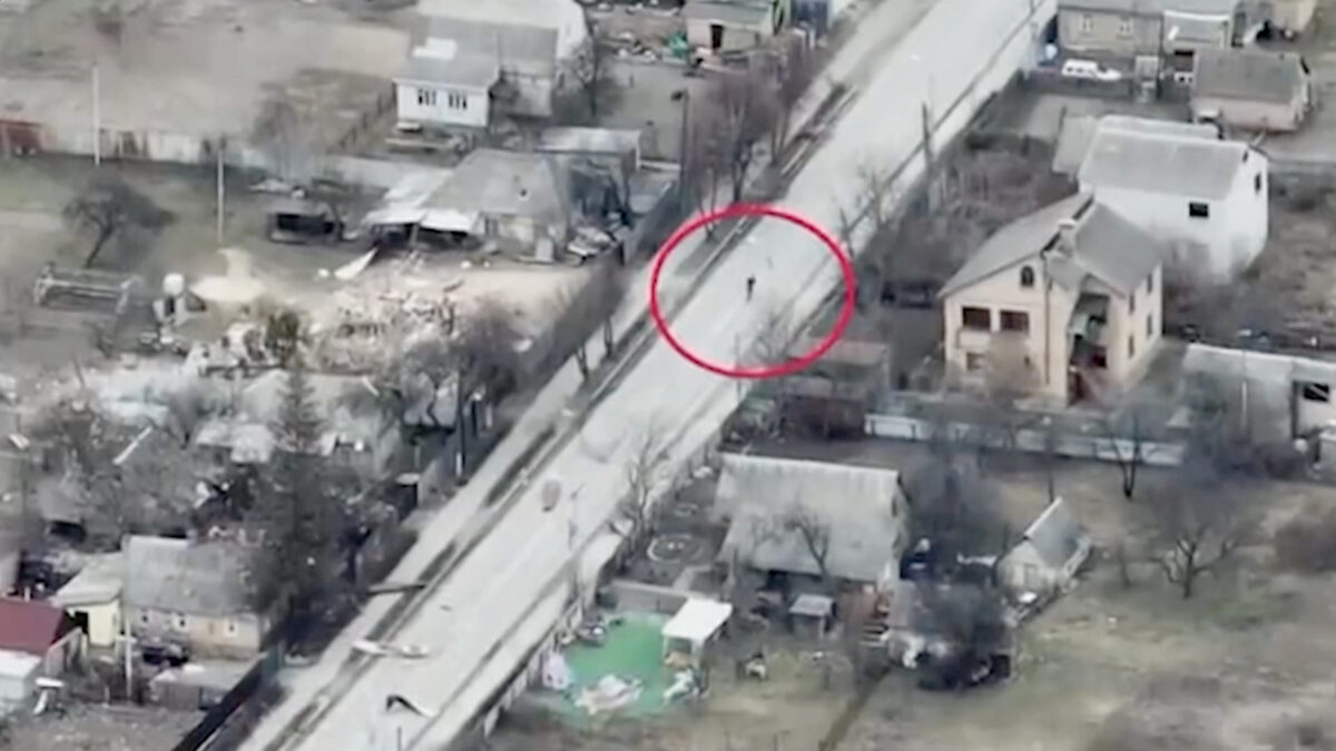 'Dronebeelden tonen hoe een fietser wordt beschoten door een Russisch pantservoertuig'