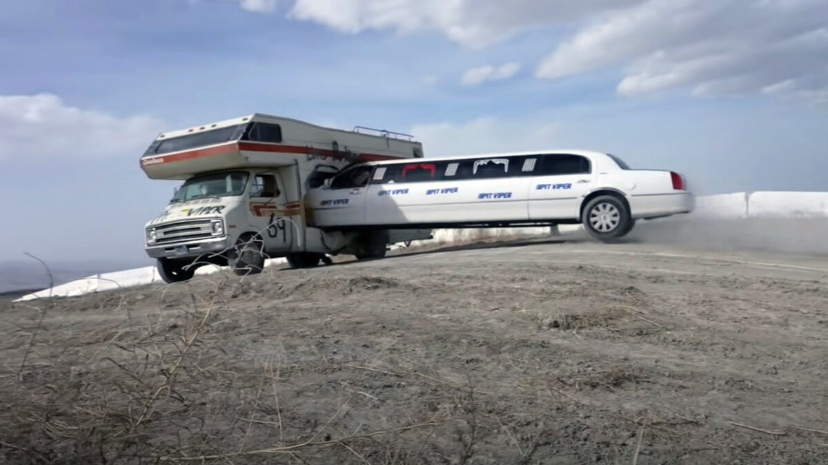 Limousine beukt met 112 km/u dwars door een camper heen