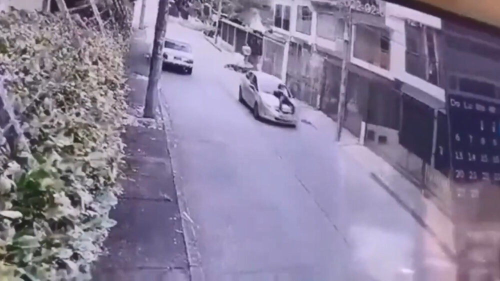 Instant karma voor Colombiaanse overvaller die vrijwel meteen door auto wordt aangereden