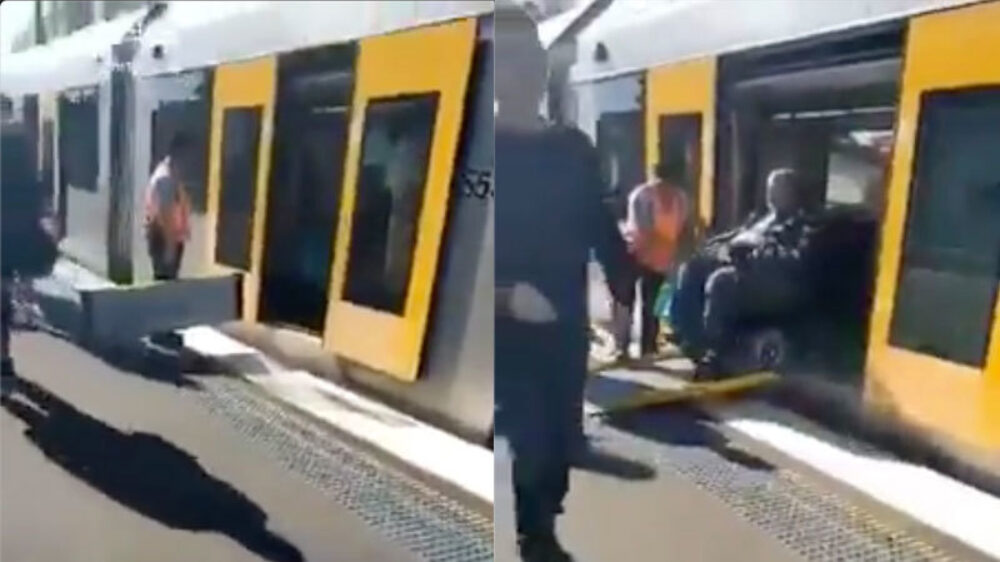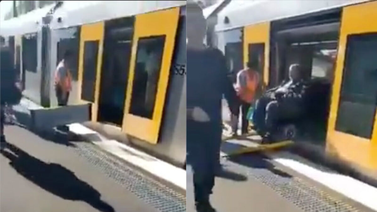 Werknemer van de maand begeleidt rolstoeler uit trein Fails