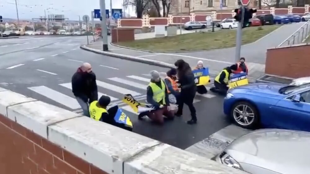 Afgelopen maandagochtend blokkeerden een aantal mensen van de internationale, activistische beweging Extinction Rebellion, niet voor de eerste keer, het verkeer in Praag. Deze mensen hadden blijkbaar geen zin om te laat op hun werk te komen en probeerden ze eigenhandig van de weg te trekken.