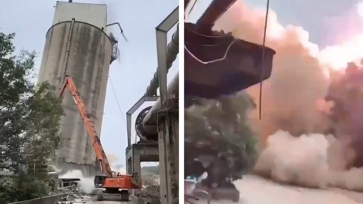 Zo gepiept, dachten ze tijdens het slopen van een silo bij een cementfabriek in Taiwan. Helaas bleek het zo'n dag waarop alles tegenzit.