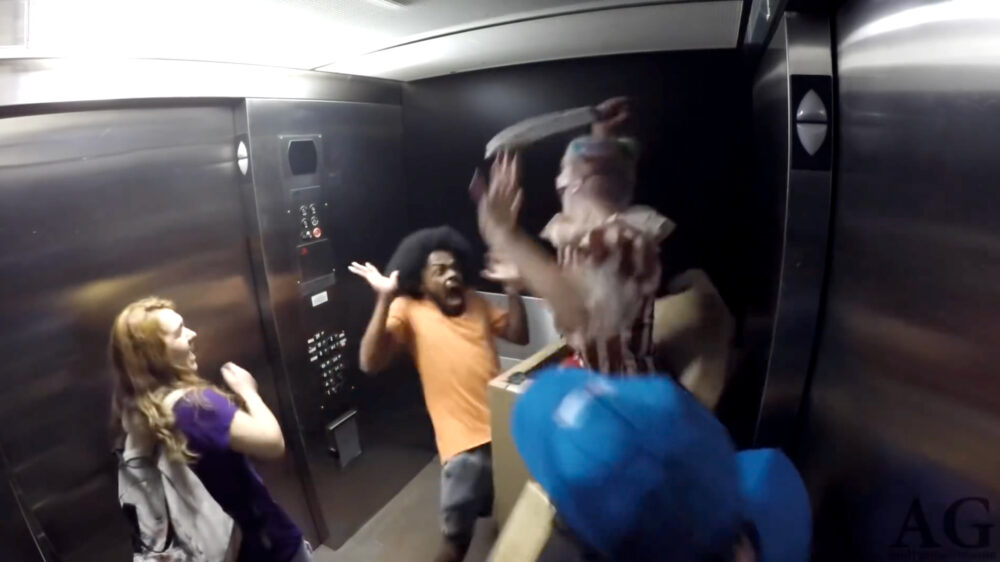 Mensen in een lift krijgen een driedubbele hartverzakking dankzij deze killer clown