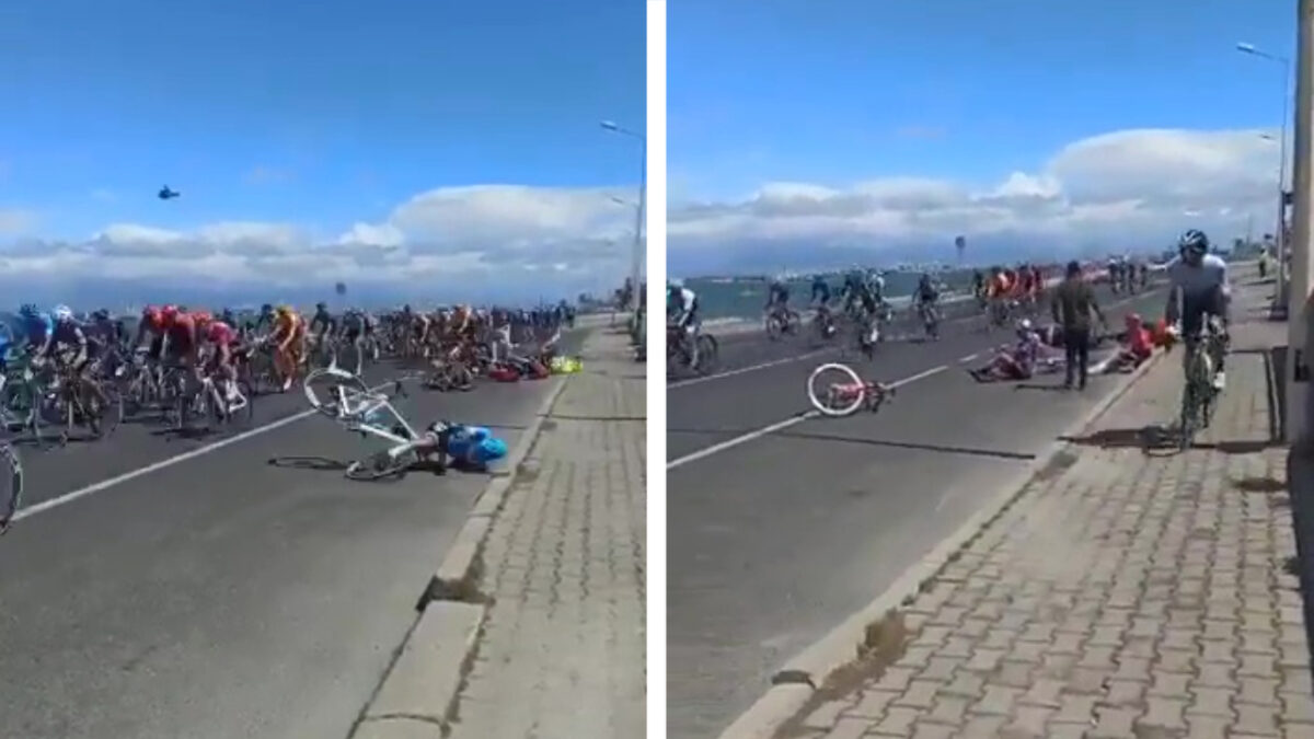 Idioot wandelt op wielerparcours en zorgt voor keiharde valpartij in Ronde van Turkije