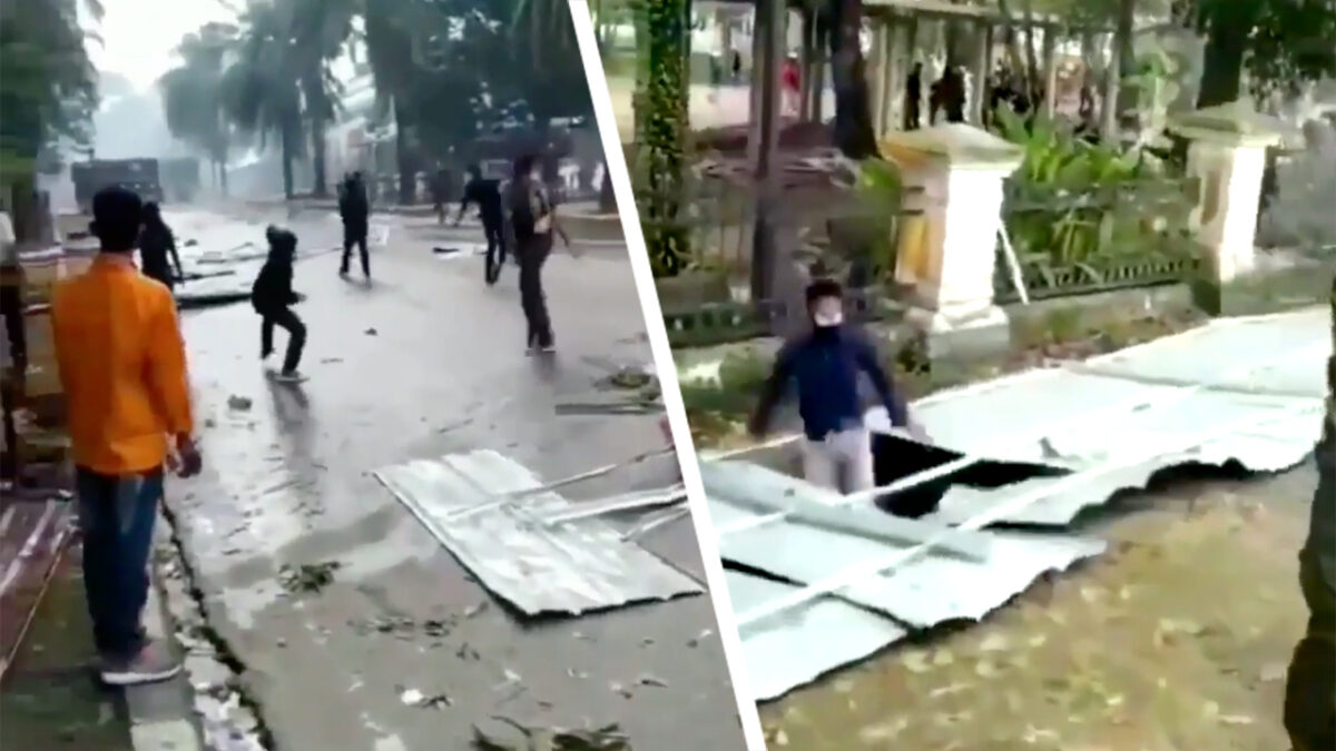 Demonstrant in Sri Lanka maakt klein inschattingsfoutje tijdens afsprong Fails