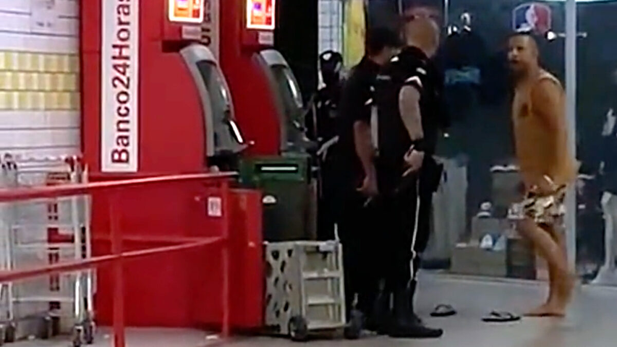 Beide heren weten de slippperdragende schreeuwlelijk een aardig tijdje te negeren, maar op een bepaald moment is het gewoon klaar en wordt er een linkerhand op zijn kin geplaatst.
