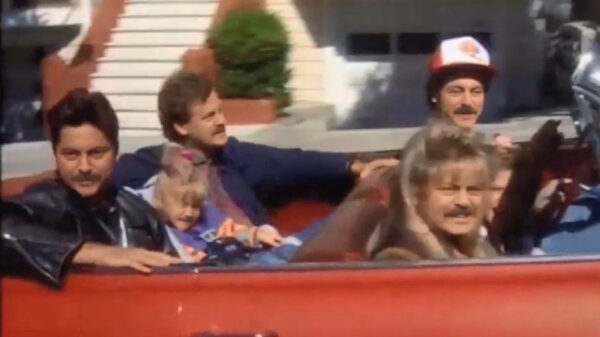 Acteur Nick Offerman is zo vriendelijk geweest om zijn snor af te staan.