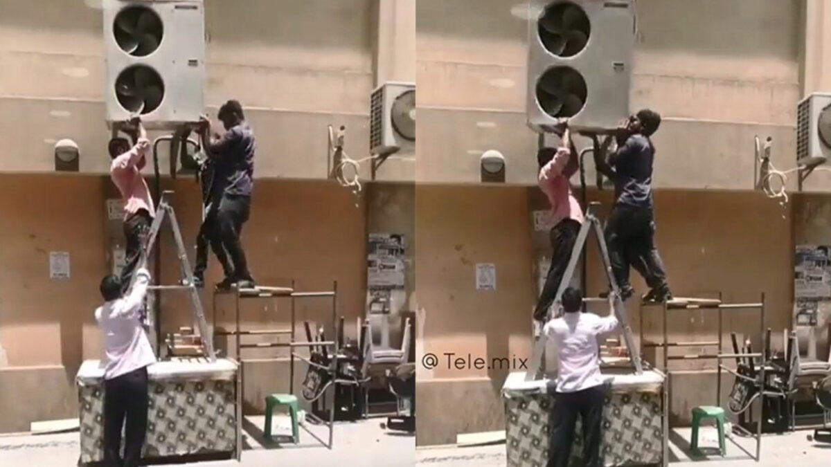 Indiase Buurman en Buurman hebben ietwat moeite met het installeren van airco Fails