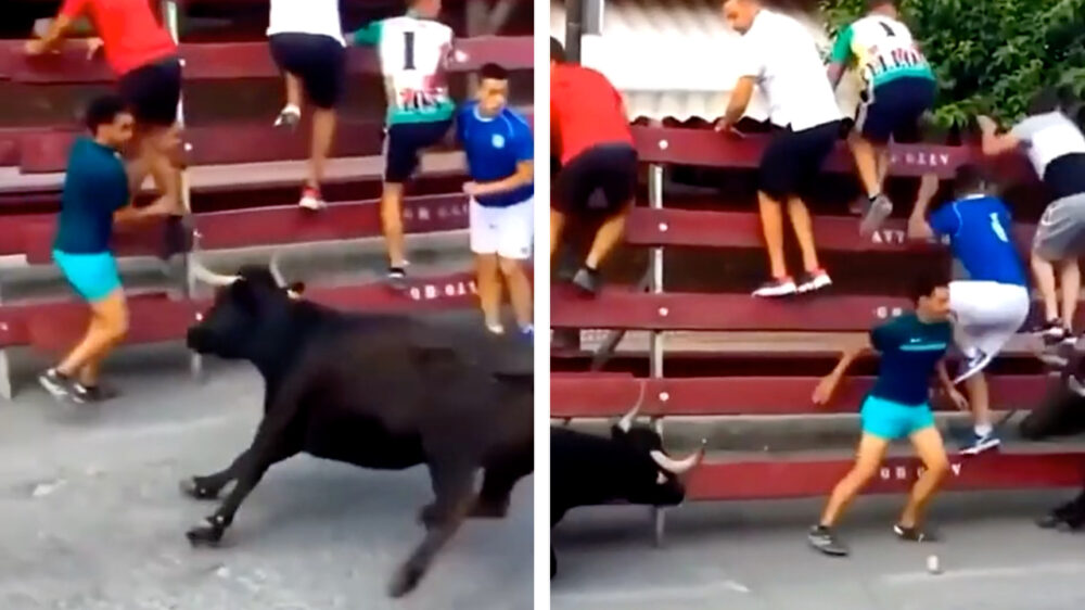 Teamwork tussen twee stieren die een snoeiharde bodycheck uitdelen