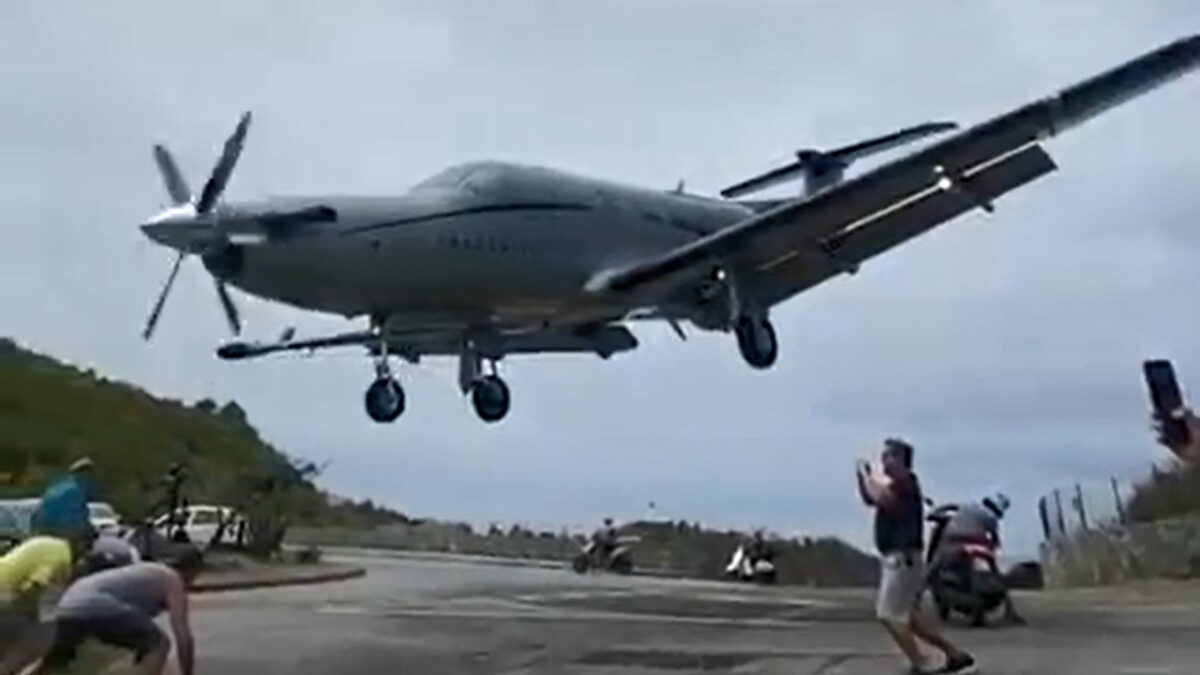 Toeschouwers bijna onthoofd als dit vliegtuig probeert te landen