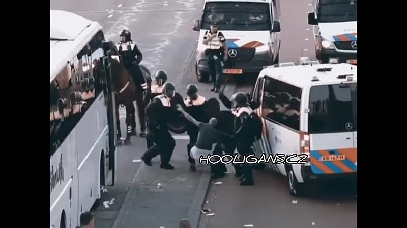 Meer sfeerbeelden van Amsterdamse hooligans die klappen krijgen van de politie