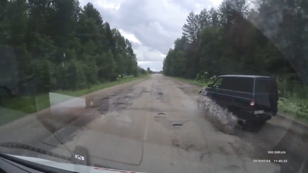 Gruwelijk slecht wegdek is uiterst geschikt voor een terreinwagen