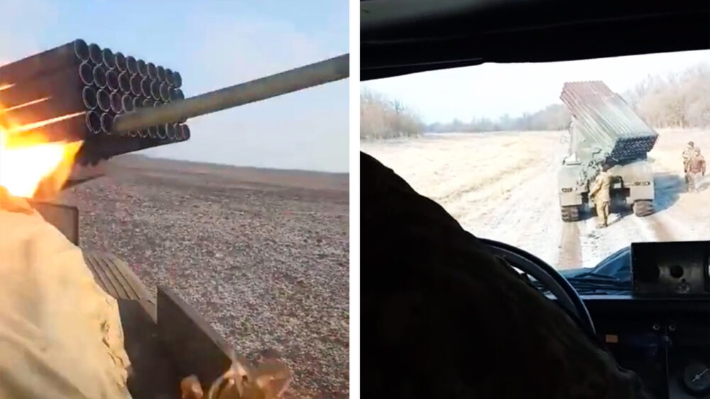 Het gruwelijke geweld van een Oekraïense BM-21 Grad-raketwerper in actie