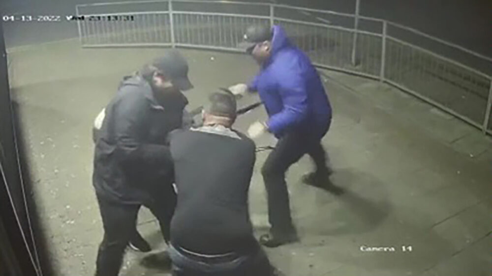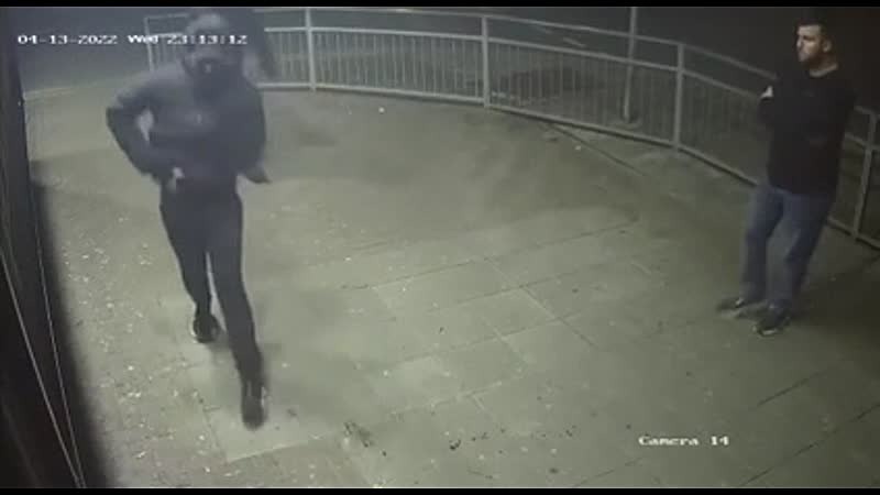 We weten niet wat er van te voren allemaal is gebeurd, maar op beeld is te zien dat deze capuchon een mes trekt als hij op een groepje mensen afloopt. Die had duidelijk de verkeerde groep uitgekozen...
