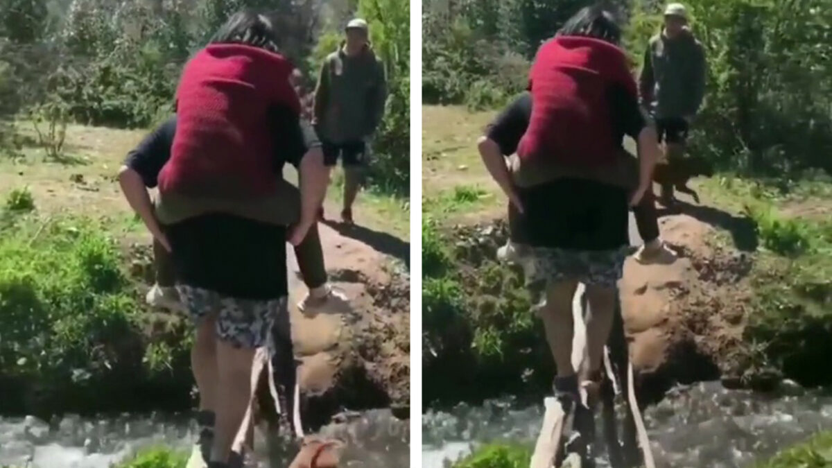 Hoffelijke heer helpt jonkvrouw veilig naar de overkant Fails
