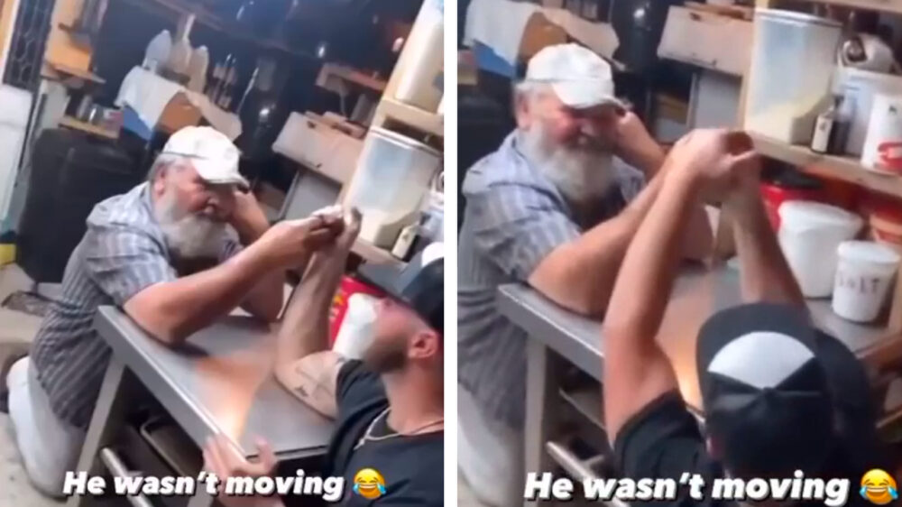 Het maakt geen zak uit hoeveel dagen in de week je in de sportschool traint, van je ouwe heer ga je het toch niet winnen. Jammer joh!