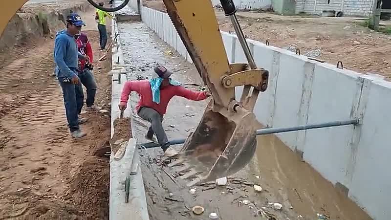 Arbeiders in het Ecuadoriaanse Pasaje hebben een hond gered die werd meegesleurd in een afwateringskanaal. [x] Faith in humanity restored.