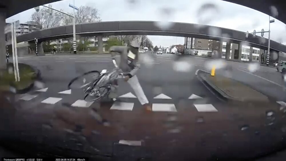 In Zwolle lopen voetgangers gewoon door rood omdat ze denken dat de rest wel ff voor ze stopt, in Maastricht dacht deze fietser waarschijnlijk hetzelfde (of hij lette ff niet op, zou in theorie ook kunnen) maar dat resulteerde wel bijna in een paar weekjes ziektewet.
