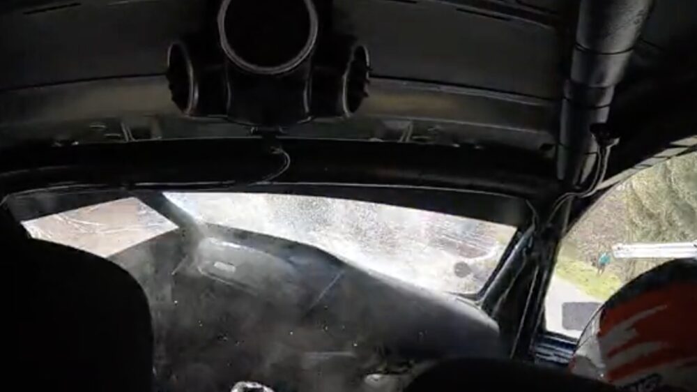 Coureur Marcin Slobodzian en zijn bijrijder Michal Poradzisz werden bijna gespietst tijdens de tweede etappe van de 2022 Rally in Polen nadat ze vol tegen een reling crashten.
