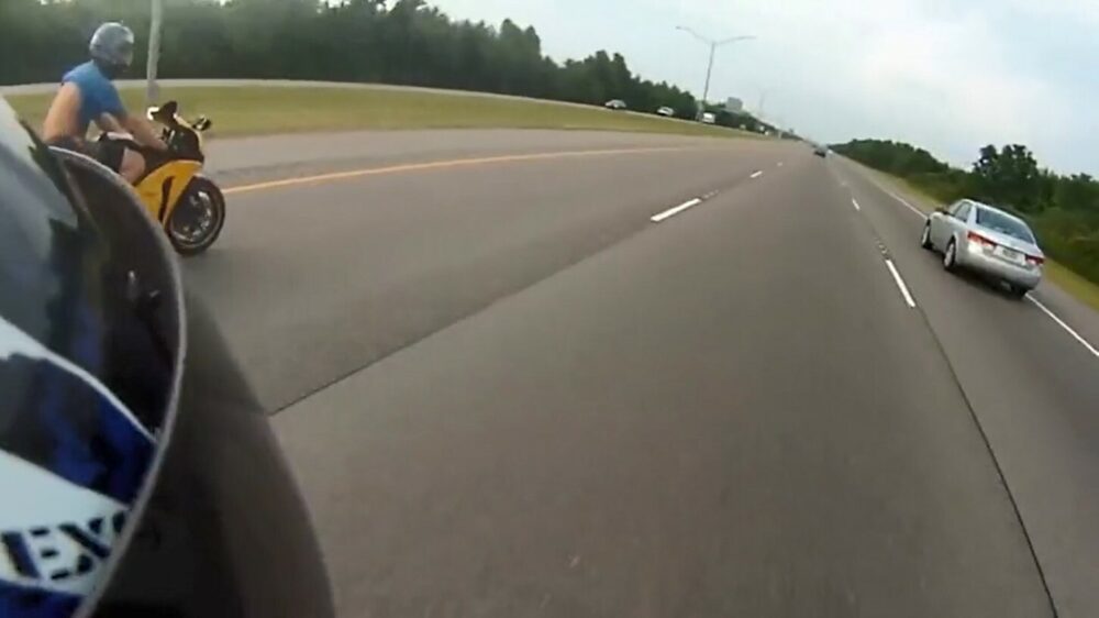Waarom zou je motorkleding dragen als je ook een t-shirt en een korte broek hebt, dacht niemand everooit. Hoeveel huidlagen zou deze beste man zijn verloren?