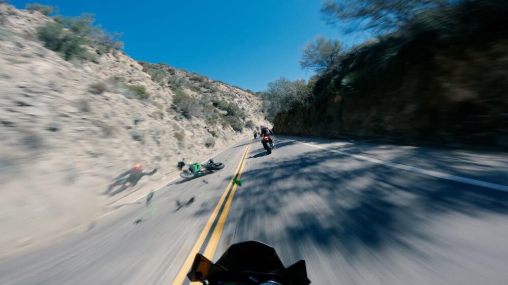 Helaas voor deze motorrijder blijkt hij niet over de skills van Valentino Rossi te beschikken als hij met een groepje vrienden over de openbare weg scheurt. Hij geeft uiteindelijk de schuld aan zijn banden, maar we weten allemaal beter. Hij komt er gelukkig goed vanaf net als degene achter hem.