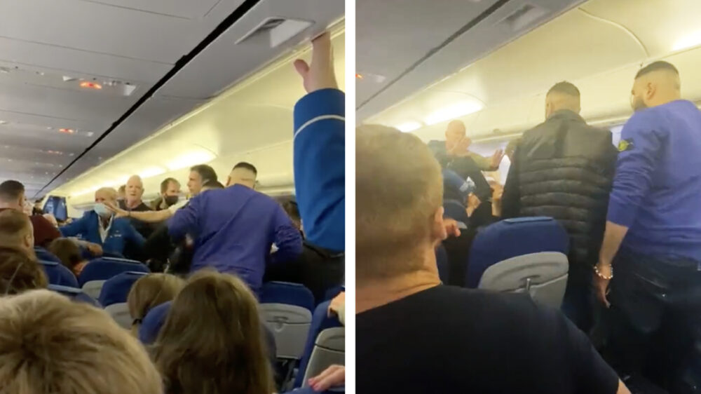 Ordinaire matpartij in het vliegtuig naar Schiphol, 6 idioten aangehouden