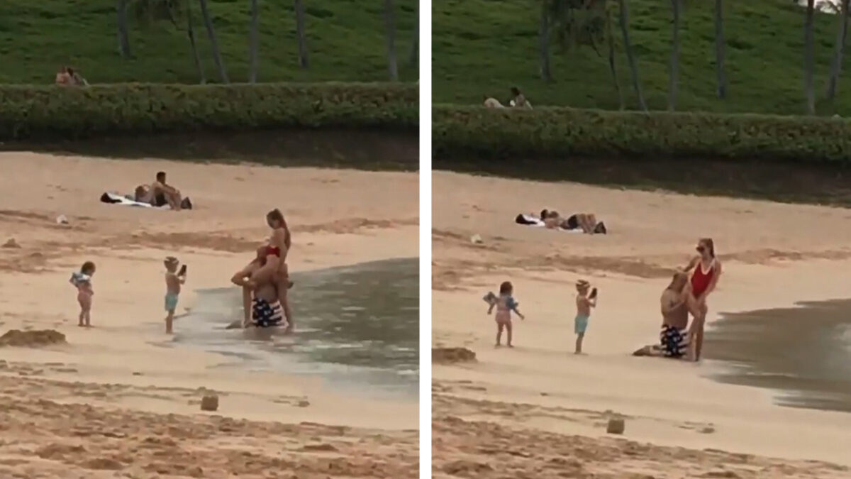 Kinderen helpen met de vakantiekiekjes van papa en zijn nieuwe vriendin