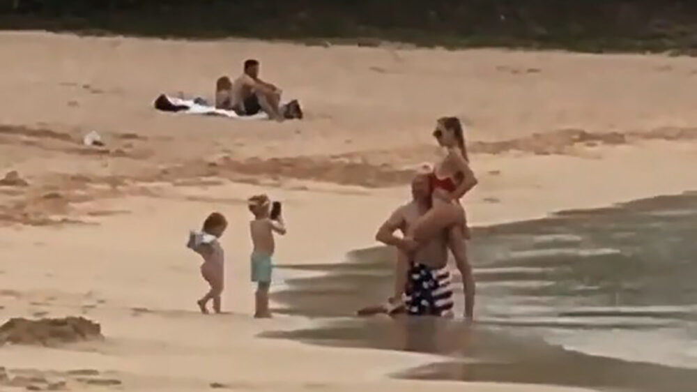 Kinderen helpen met de vakantiekiekjes van papa en zijn nieuwe vriendin