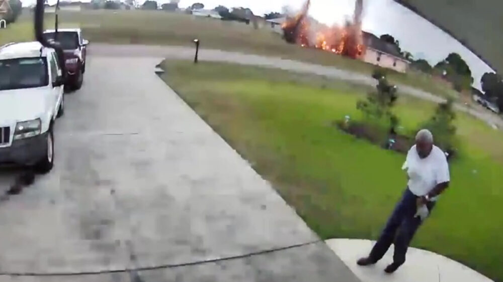 Deurbelcamera legt knetterharde blikseminslag bij de overbuurman vast
