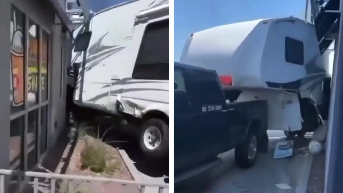 Tip du jour: met een joekel van een aanhanger pas je niet door de drivethrough Fails