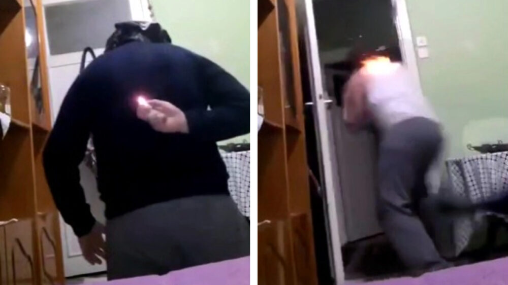 Een klein beetje vooruitziende blik is wel handig als je stuntman wil worden. Deze faalhaas leek namelijk érg verbaasd toen zijn shirt in de fik ging nadat hij er een aansteker bij hield.