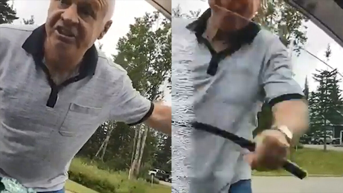 Geflipte oude vent is pissig en slaat autoruiten in met ploertendoder