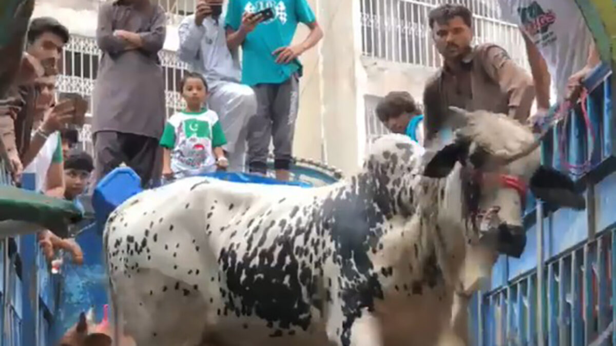 Stier gaat door het dolle als hij uit vrachtwagen wordt gehaald