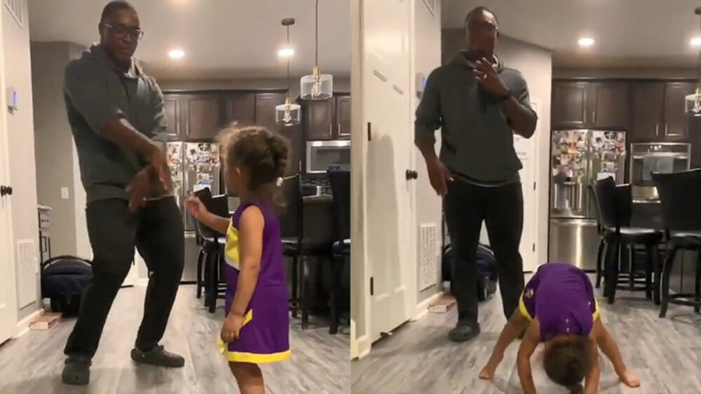 Vader denkt gezellig met zijn dochtjertje te dansen. Wait for it...