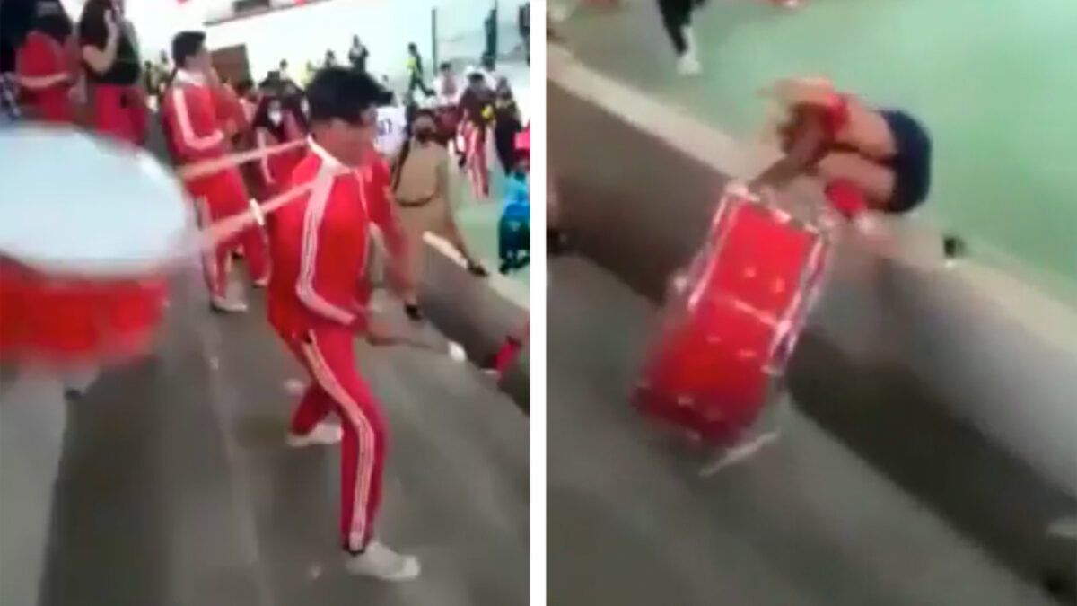 Trommelbink probeert indruk op de cheerleaders te maken Fails