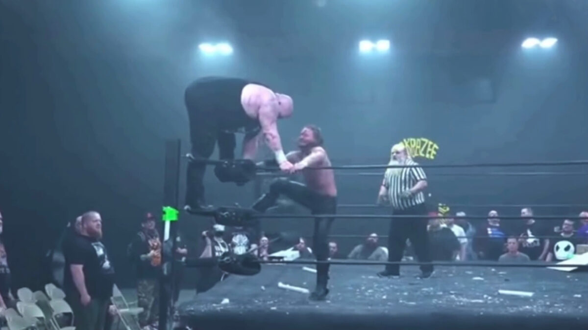 Het bewijs dat scheidsrechter zijn bij een worstelwedstrijd niet zonder gevaar is