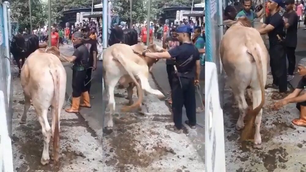 Koe wil niet geslacht worden en laat man een aantal tandjes spugen Bizar