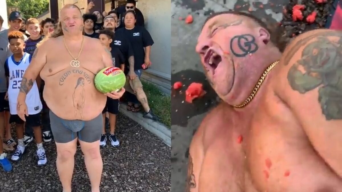 Internetheld Debiel Gucci Berry maakt een fruitsalade met zijn balzak, die hij na vandaag helemaal nooit meer krijgt te zien.