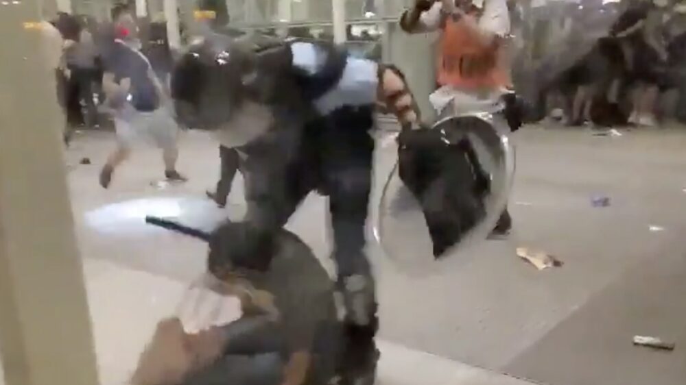 Vrouw door oproerpolitie Hongkong neergebeukt, omstanders nemen wraak